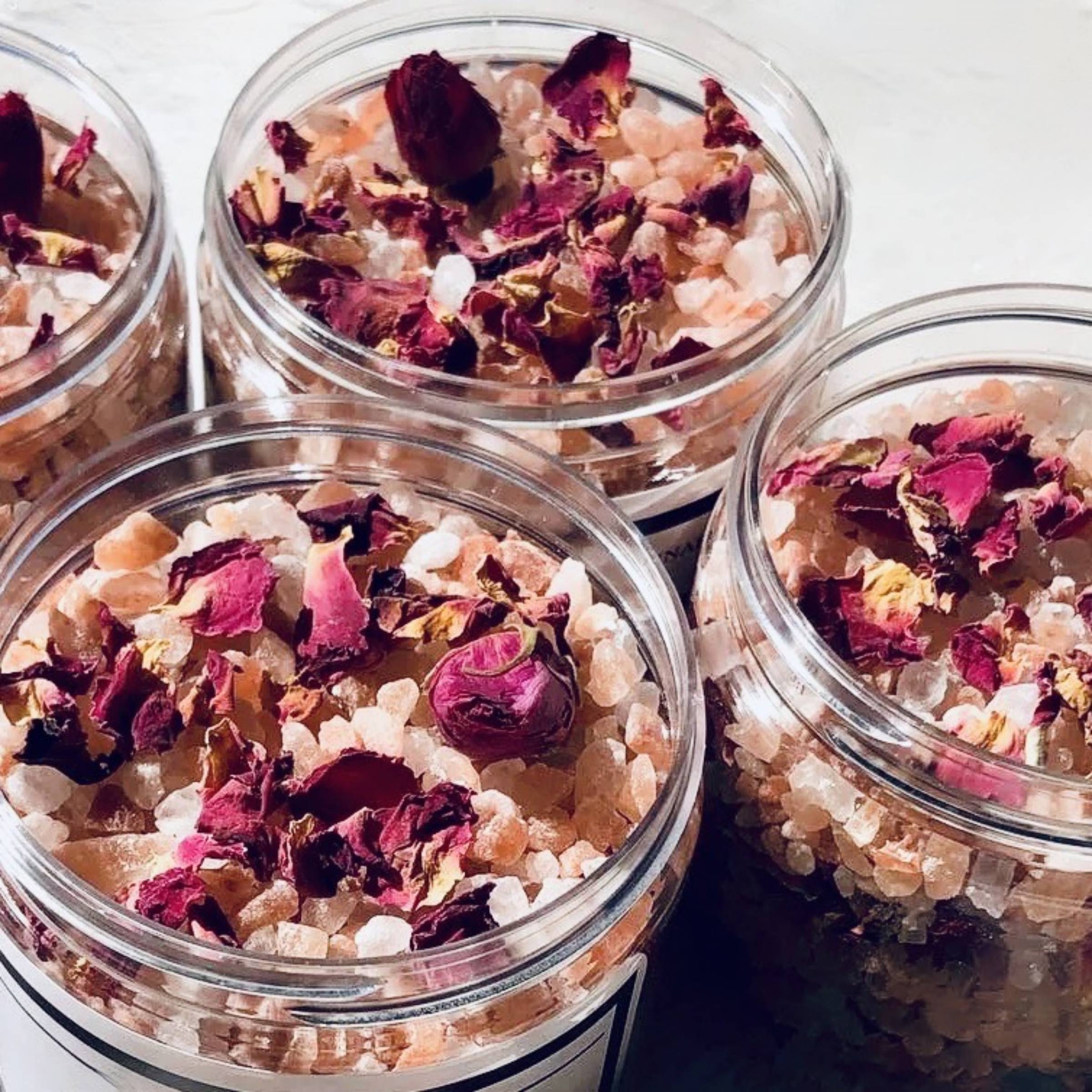 Chaque pot de 250 g renferme un mélange exquis de sel de l'Himalaya, de boutons de rose séchés et de pétales de roses premium, créant ainsi une expérience luxueuse pour votre rituel de bain.