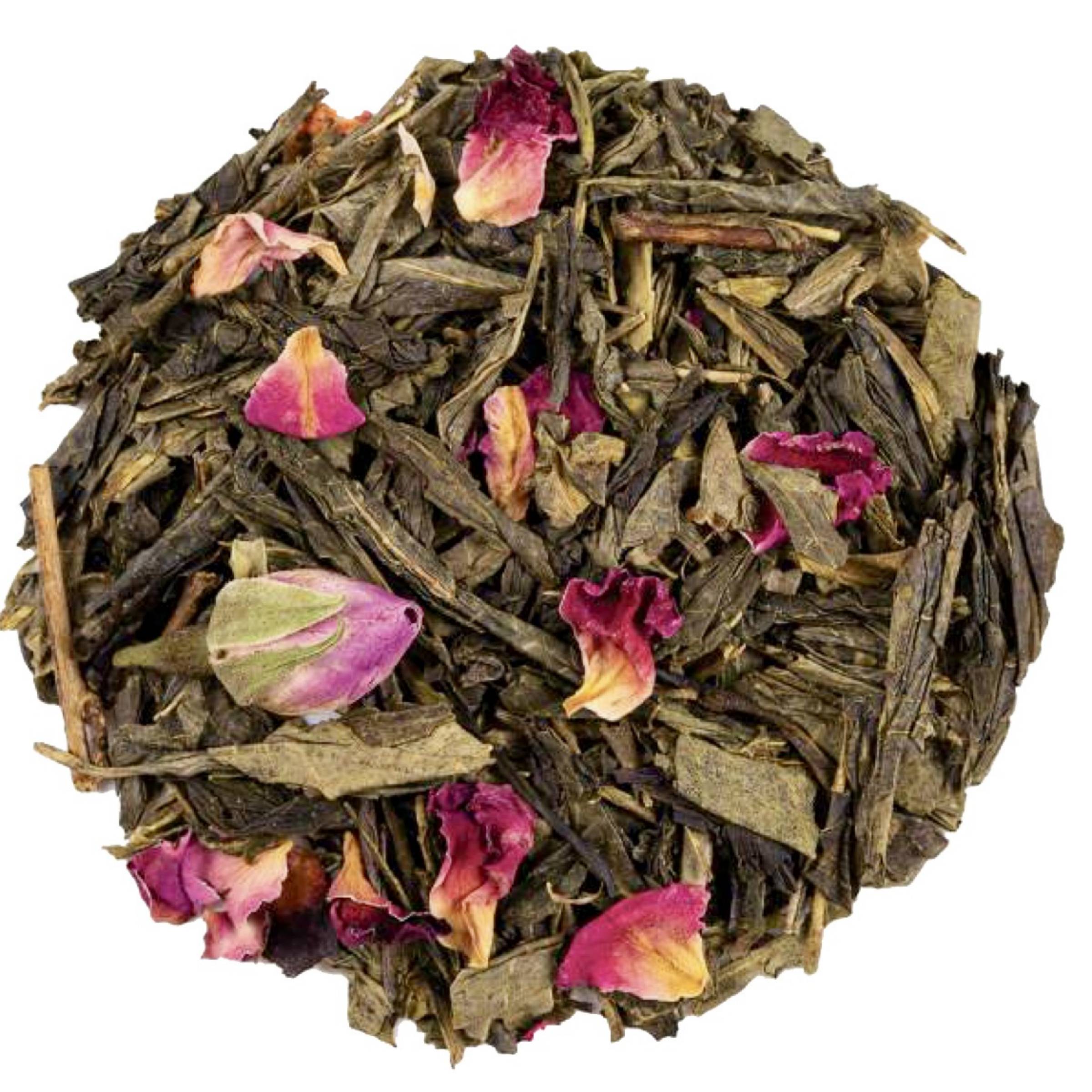 Gamme de 3 thés d'exeption à la rose BIO : Thé vert, Thé noir et Infusion +30% de fleurs séchées 100% naturel